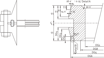 | DN | NPS | IX size | Dg1 mm | DG2 mm | DG3 mm | DG4 mm | DG5 mm | DG6 mm | DG7 mm | DG8 mm | HG1 mm | HG2 mm | HG3 mm | HG4 mm | HG5 mm | RG1 mm | Weight kg |